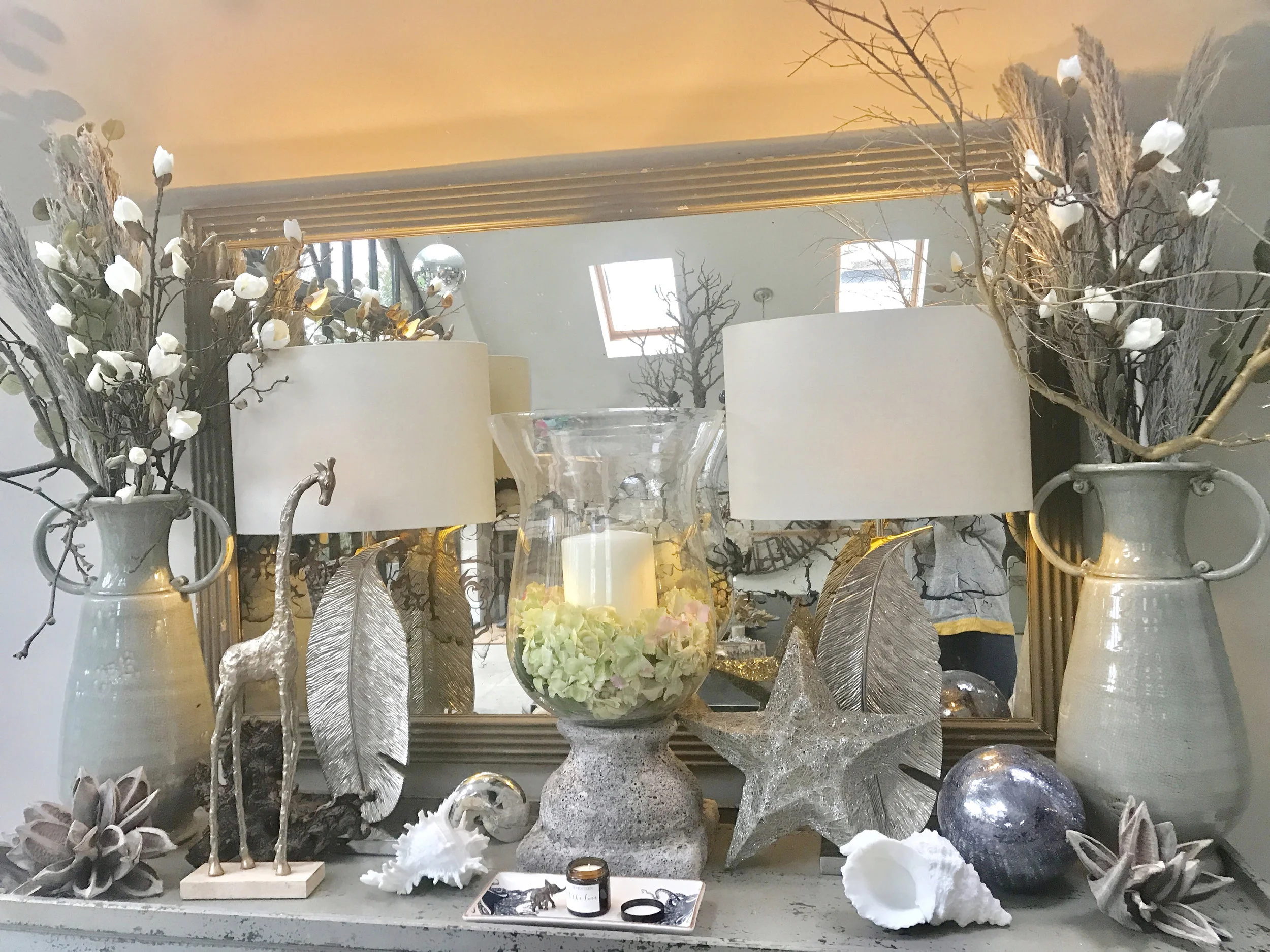 Our console design also uses tall vases with sprays of magnolia, grasses and sprayed twigs which create scale and drama - like we said, Christmas affords us all the opportunity to go a little bigger!